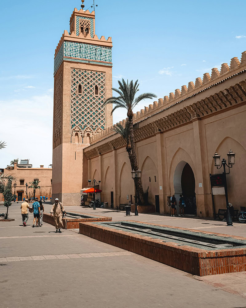 Marakeš navdušuje tudi s svojo bogato zgodovino in arhitekturo. Med najlepšimi znamenitostmi izstopa palača Bahia, veličastna rezidenca iz 19. stoletja z osupljivimi mozaiki, rezljanimi lesenimi stropi in mirnimi notranjimi dvorišči. Poseben arhitekturni dragulj je tudi Ben Youssef Madrasa, nekdanja islamska šola z izjemno geometrijo, bogato kaligrafijo in čudovitim dvoriščem, ki velja za enega najlepših primerov maroške islamske arhitekture. Med pomembnimi zgodovinskimi znamenitostmi so tudi Saadske grobnice, kraljevi mavzoleji iz 16. stoletja, znani po bogato okrašenih marmornatih grobnicah.